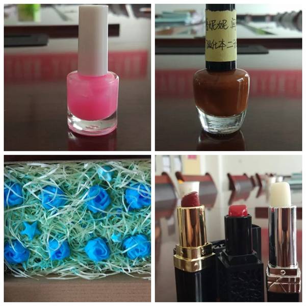 此次比赛共7组选手参加,制作包括水晶玫瑰、水果蜡烛、拉丝指甲油、口红、唇膏等作品,同学们多选用橄榄油、蜂蜜、维生素E胶囊、优色林愈合软膏等无毒无害配料制作,保证了作品的健康性。随后,评委老师对作品进行专业点评,给出进一步改进意见,希望同学们能认真学习,不断完善个人知识储备,今后做出科技性和创新性更强的作品。